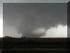 large tornado with a wedge appearance. Mostly surrounded dust, the condensation