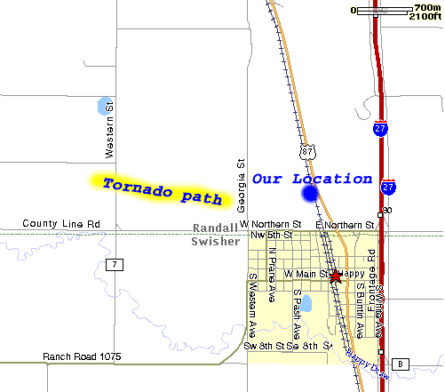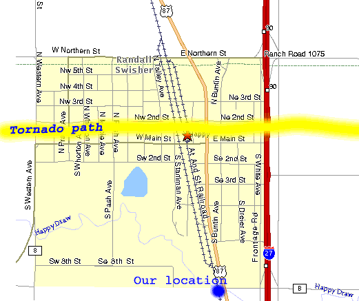 South end of Happy TX. looking northwest, just as the tornado was